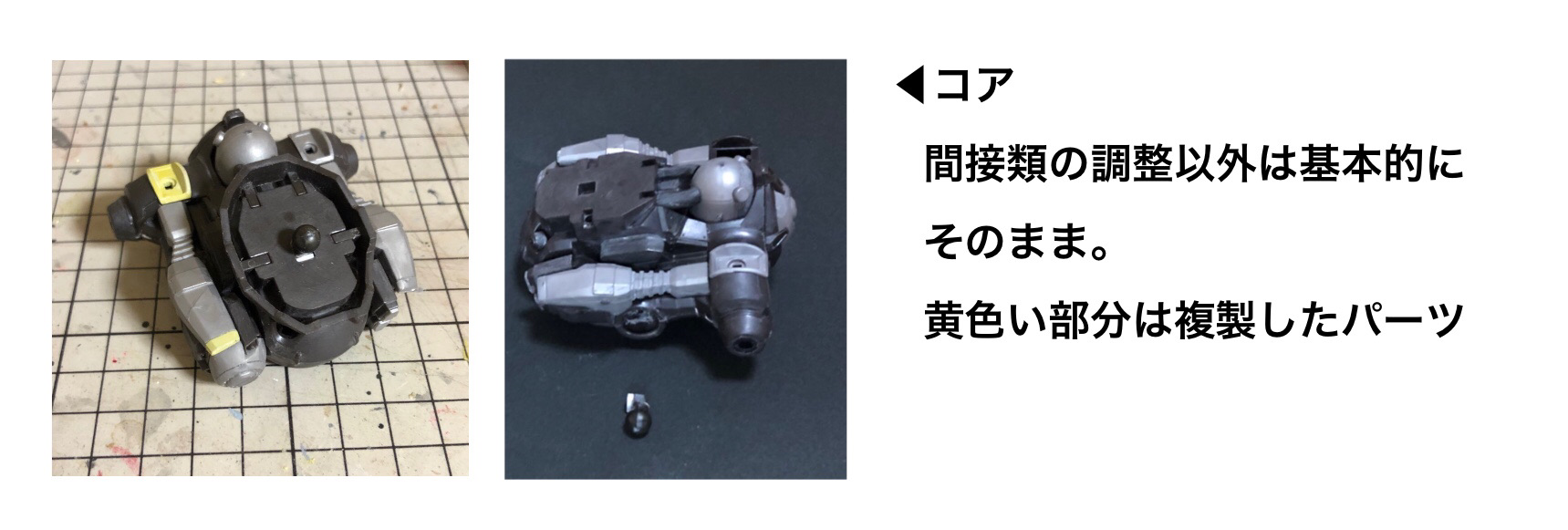 コアの腰ジョイントが前側についており、ゲームに比べコアが後にある印象でした。