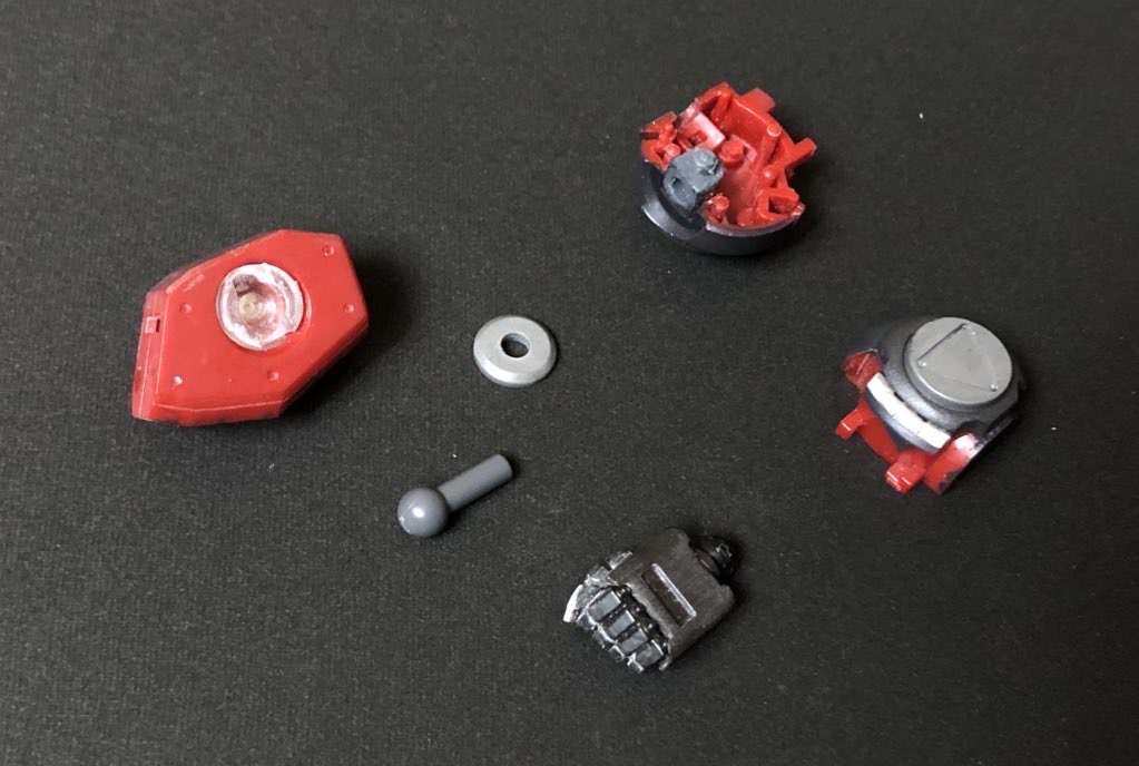 ポリキャップを仕込み、かつリングパーツを穴あけ。引き出し機構にして肩を上がるようにしました。