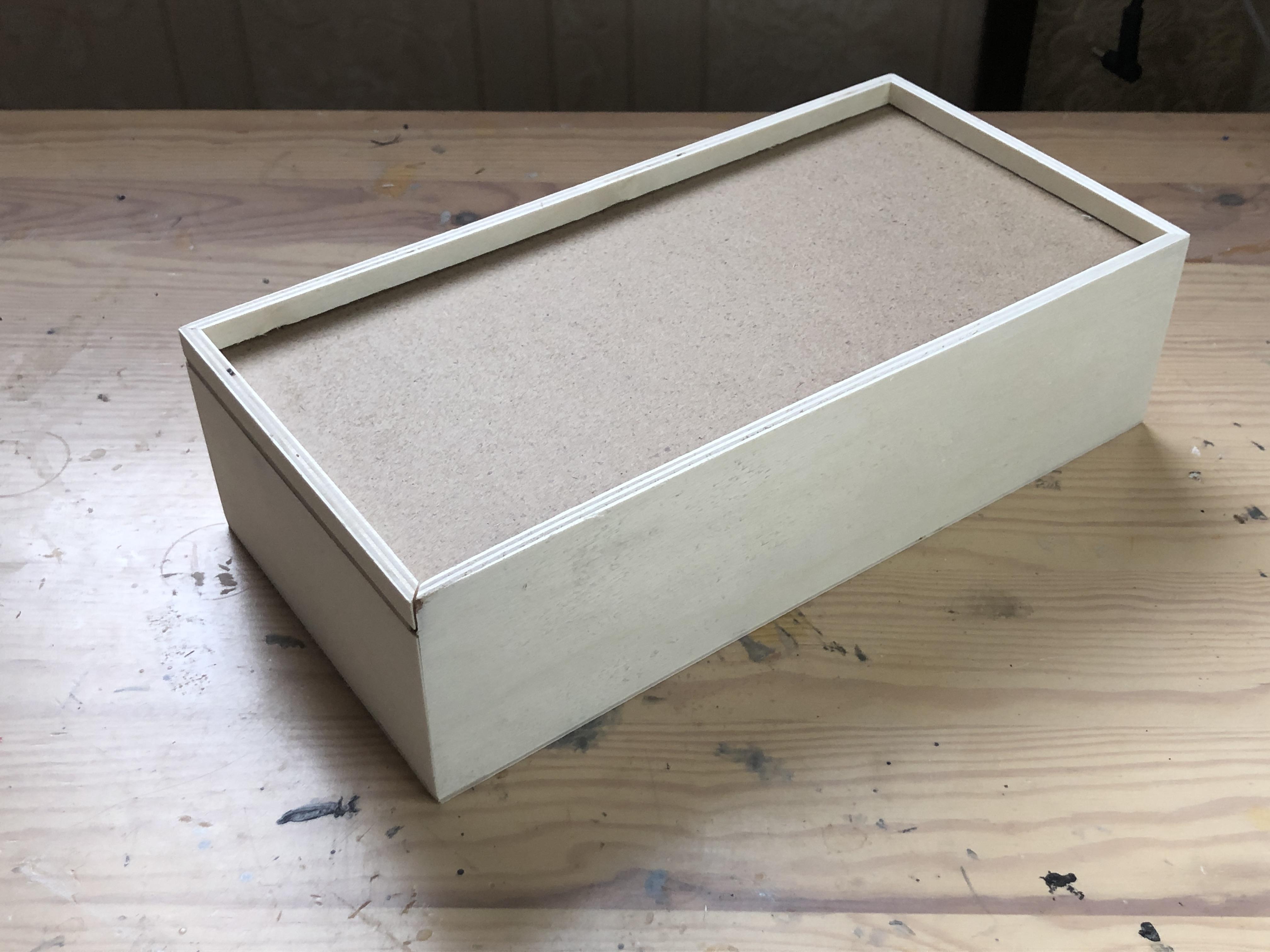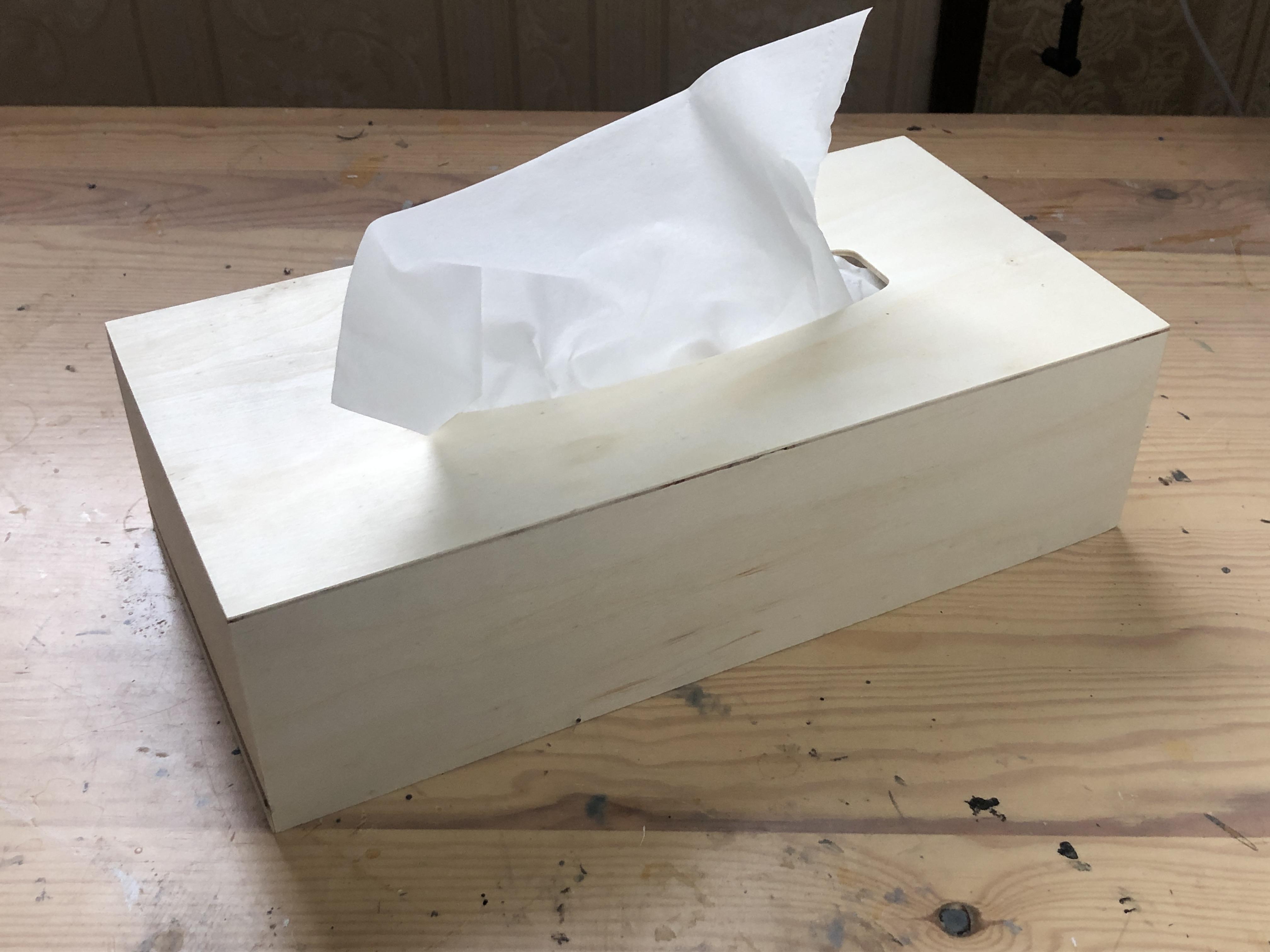 - ②ティッシュボックスは現在制作中のものや近々使う塗料を入れる。