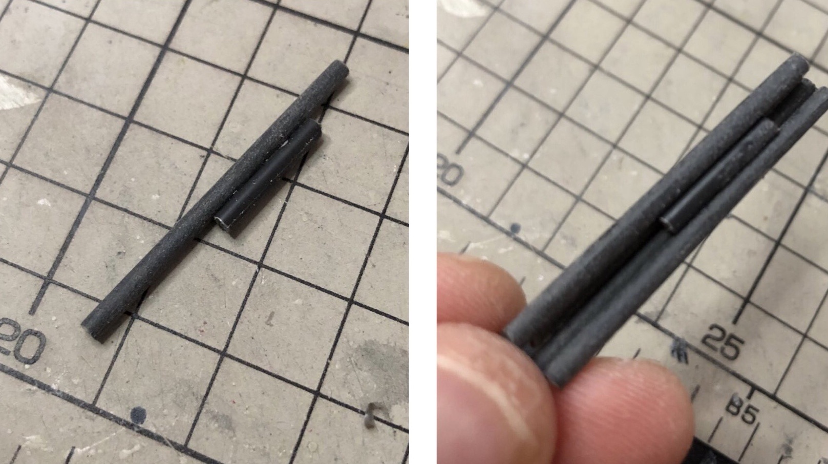 長い部分のバレルはランナーから2.5mm棒を採取して作ります。