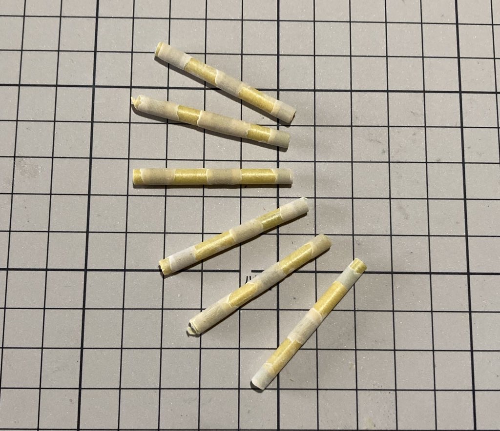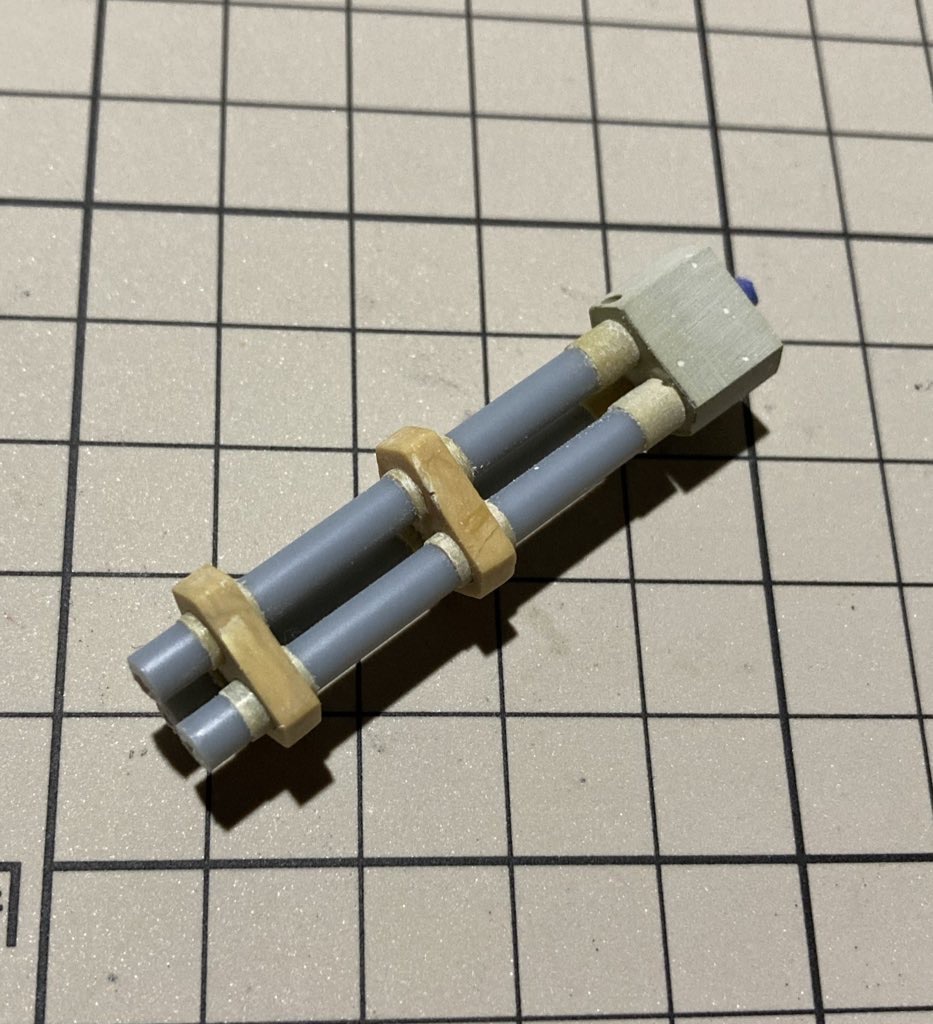 普通だったらパイプを2種類組み合わせそうなものですが、今回は3.5mmプラ棒とエポキシパテを使ってこの部分を自作していきます。