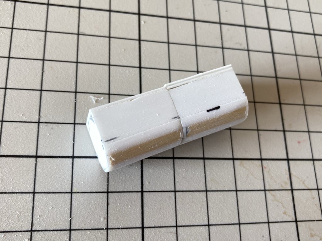機関部のパーツは仮止め接着をしてから削り込みをして縮尺を合わせてます。