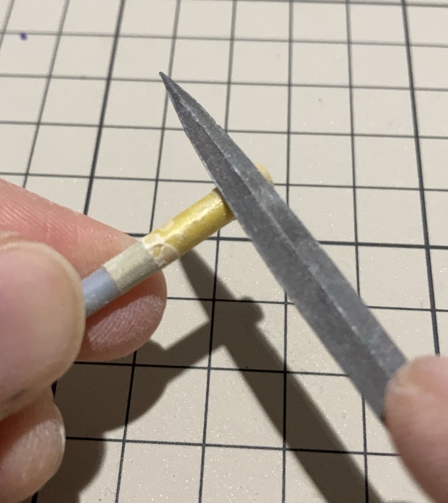 完全に乾かしたら、エポパテを削ります。 この時、紙やすりよりも金属ヤスリの方がピンポイントに削れるためおすすめです。