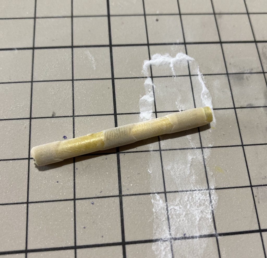 次にエポパテを盛り、ベビーパウダーをまぶしたカッターマットの上でゴロゴロと転がします。